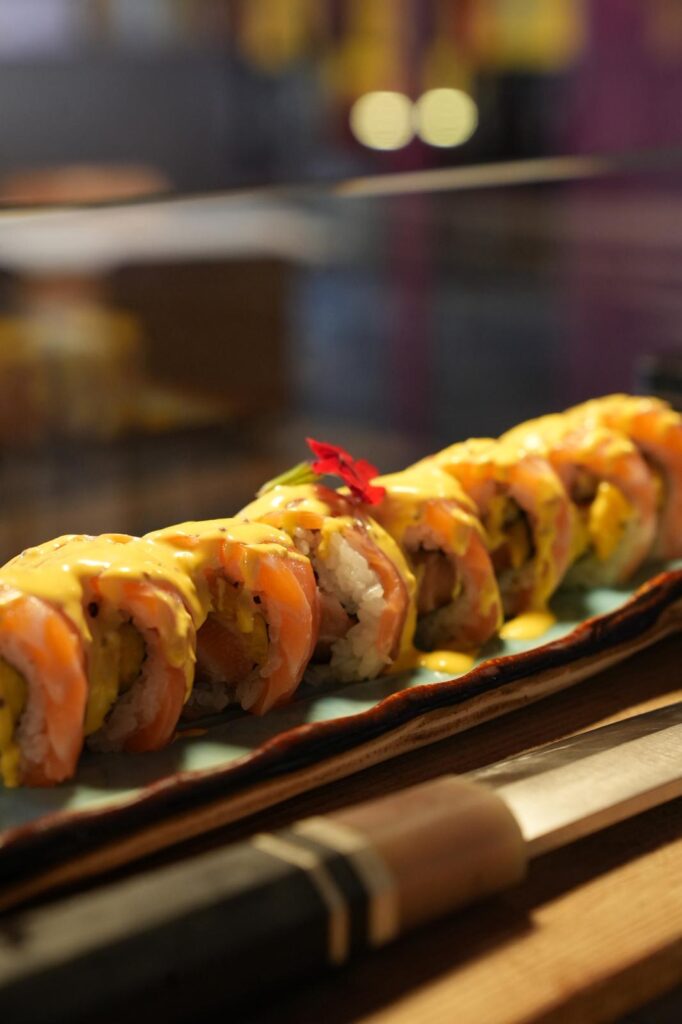 Gaudeix de l’espectacle de la cuina en directe a la barra japonesa.